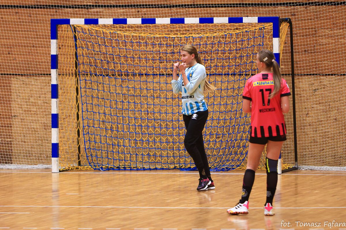 Początek nie ułożył się po myśli drużyny Pawła Tetelewskiego. Po siedmiu minutach rywalki prowadziły 4:1, a w 12. po trafieniu Martyny Borysławskiej z kontry aż 8:3. W tym okresie bardzo dobrze spisywała się Natalia Filończuk, która obroniła już pięć rzutów. W dodatku po kwadransie staw skokowy skręciła Magda Więckowska i nie powróciła już do gry. Z grymasem bólu i łzami w oczach opuściła parkiet.